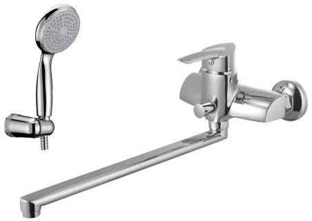 Универсальный смеситель представляет собой смеситель, который обладает длинным изливом и возможностью переключения на душ. Обычно смесители данного вида используются одновременно для ванны и раковины.