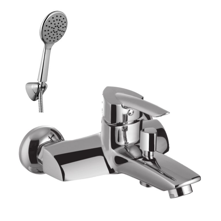 Смеситель для ванны с душем представляет собой конструкцию, обладающую изливом и душевым шлангом с лейкой.