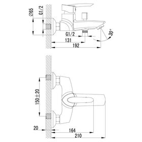 Длина излива у настенных смесителей указана от стены до конца излива/аэратора.
