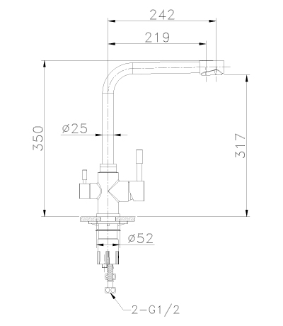 • Для крана с питьевой водой: кран-букса с керамическими пластинами (угол поворота – 90 градусов)