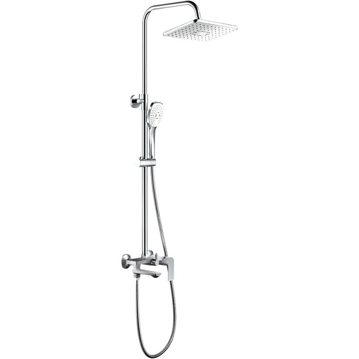 Смеситель для ванны HAIBA HB24505 1-ручный, поворотный излив 110мм, 3-функциональная лейка ш~150в~150мм, шланг 1.5м, с верхним прямоугольным тропическим душем ш291г191мм, с высотой лейки 663-1227мм, габаритная высота 1216мм, глубина 455мм, латунь, глянцев