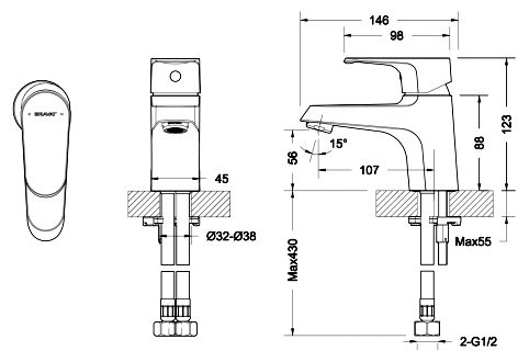 Минимальное количество для товара "Смеситель для раковины BRAVAT ALFA F1120178CP, однорычажный, низкий монолитный, латунь, хром" 1.