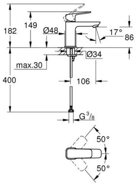 • Система быстрой установки GROHE FastFixation®: Упрощает процесс монтажа, позволяя сэкономить время при установке смесителя.