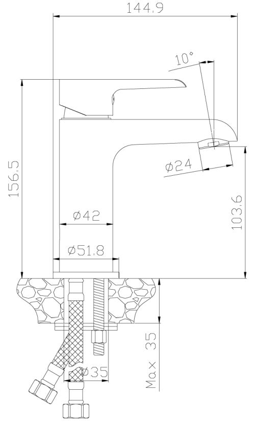 - литой излив высотой 104 мм длиной вылета ~110мм