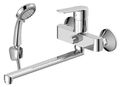 Смеситель для ванны с душем DECOROOM DR22043 одноручный, с длинным, поворотным изливом 300мм, 5-функциональной душевой лейкой, латунь, хром (КНР)