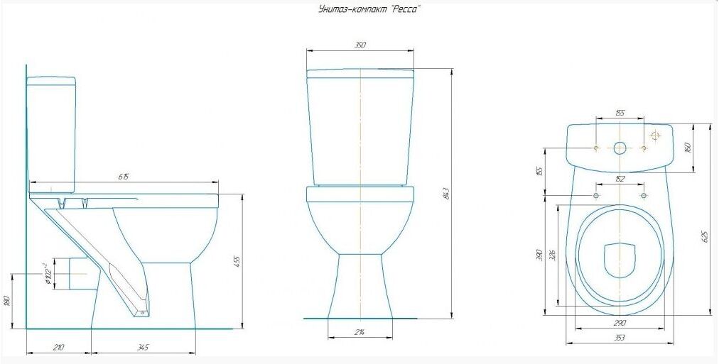 - Комплектация Унитаз, бачок, арматура, сиденье, крепление к полу