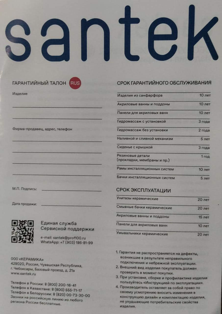 - Инсталляция в комплекте не предусмотрена
