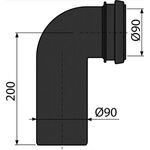 Колено стока, комплект ALCAPLAST M908 для DN90/90, L200мм чёрный, полиэтилен, Slim [20/320] 8595580501907