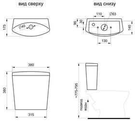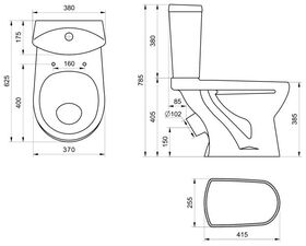 Высота унитаза со смывным бачком и чашей, измеряемая по прямой вертикальной линии от крайней нижней до крайней верхней точки устройства. Для подвесного и приставного унитаза высота будет равна высоте чаши.