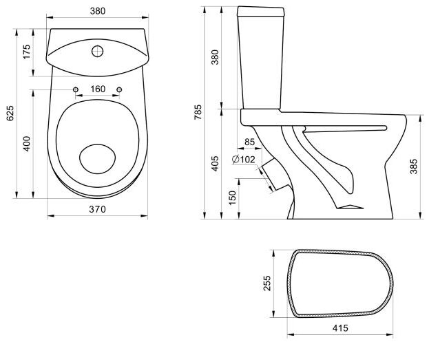 Длина унитаза считается от крайней точки передней части чаши до крайней точки за бачком. Диапазон длины стандартного унитаза колеблется от 450 до 800 мм. Модели, адаптированные для детей, имеют длину менее стандартной, менее 240мм.
