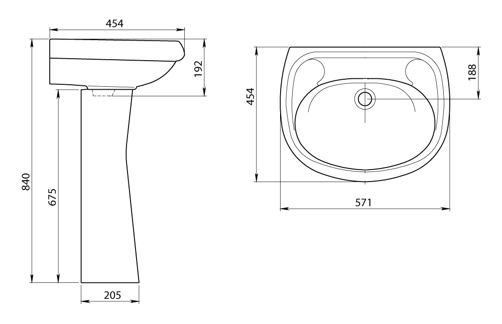 - Размеры умывальника: 571x454x188 мм