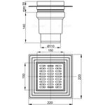 Трап сливной ALCAPLAST APV11 150×150/110 мм прямой сток, решетка пластик, воротник двух-уровневой изоляции, гидрозатвор мокрый