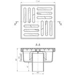 Трап горизонтальный АНИПЛАСТ TQ5112 с выпуском 50мм, нерегулируемый, сухой, с нержавеющей решеткой 150*150мм, нагрузка до 300кг