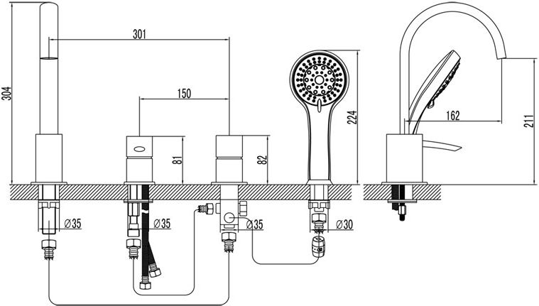 Отверстие для монтажа – это небольшой вырез в материале раковины\ванны\биде, предназначенный для монтажа смесителя, душа и иных элементов. В зависимости от количества элементов изменяется и количество отверстий.