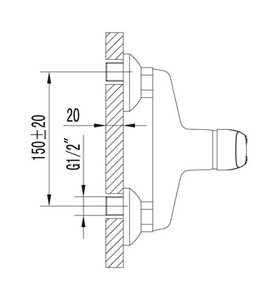 Смеситель для душа представляет собой смеситель без излива, который может быть как встраиваемой в стену конструкцией, так и устанавливаемой традиционным наружным способом.