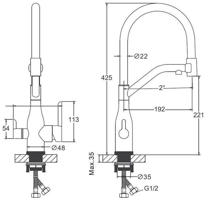 - Форма кухонного излива U-образный, гибкий