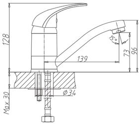 - Высота излива 73 мм