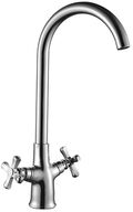 Смеситель для кухни DECOROOM DR47028, двуручный, крестообразные ручки, с поворотным изливом, хром