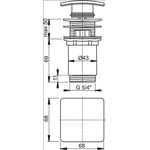 Донный клапан сифона для умывальника ALCAPLAST A393 click/clack 5/4", цельнометаллический с переливом и квадратной заглушкой 68х68мм, латунь, хром [30]