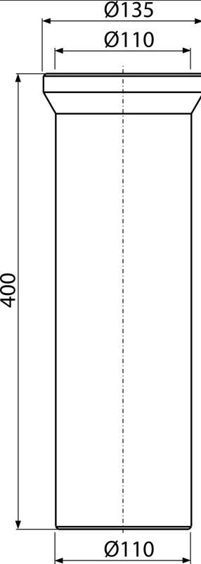 Сифон-фановая труба, насадка для унитаза ALCAPLAST A91-400, патрубок для унитаза ф110мм, L400мм, 400×135×135мм, 0.5899кг (Чехия)