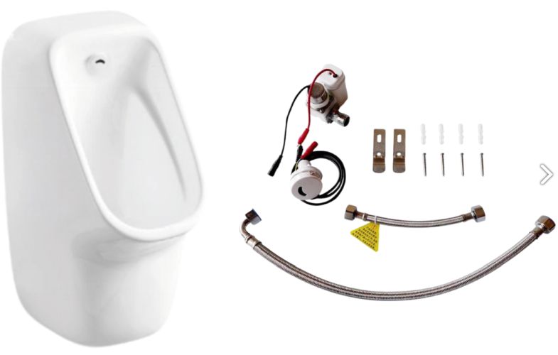 Главная особенность этой модели — встроенное устройство автоматического смыва, которое уже входит в комплект поставки. Система работает от батареек, что обеспечивает автономную работу без необходимости подключения к электросети. Это особенно удобно при установке в местах, где отсутствует доступ к стационарному питанию.