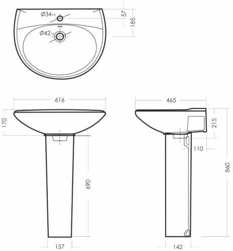Раковины с полупьедесталом\пьедесталом представляют собой раковину с «ножкой», скрывающей шланги подключения смесителя и сифон. Полупьедестал – конструкция по функциям идентичная пьедесталу, но меньше по высоте.