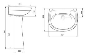 - Размеры умывальника: 571x454x188 мм